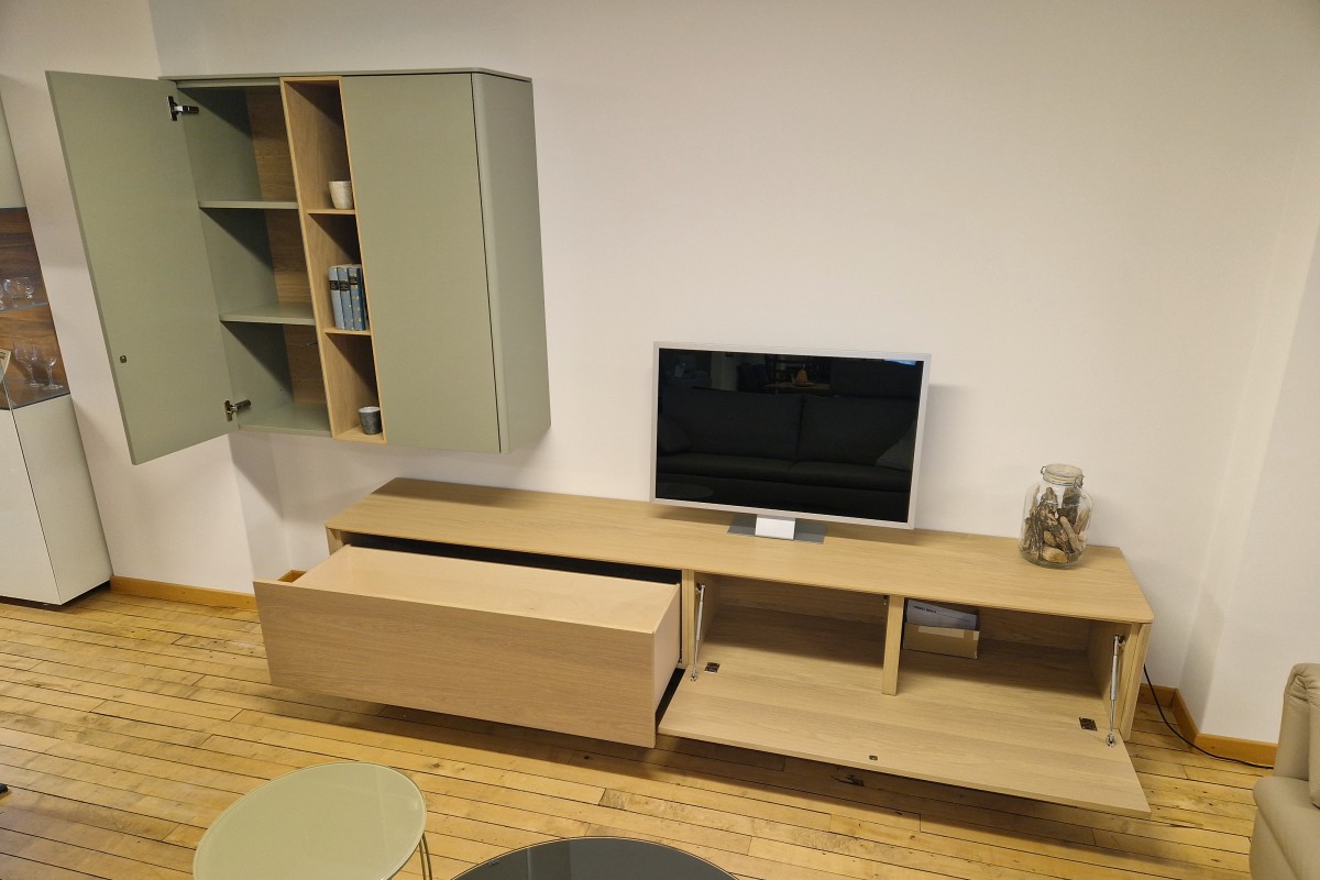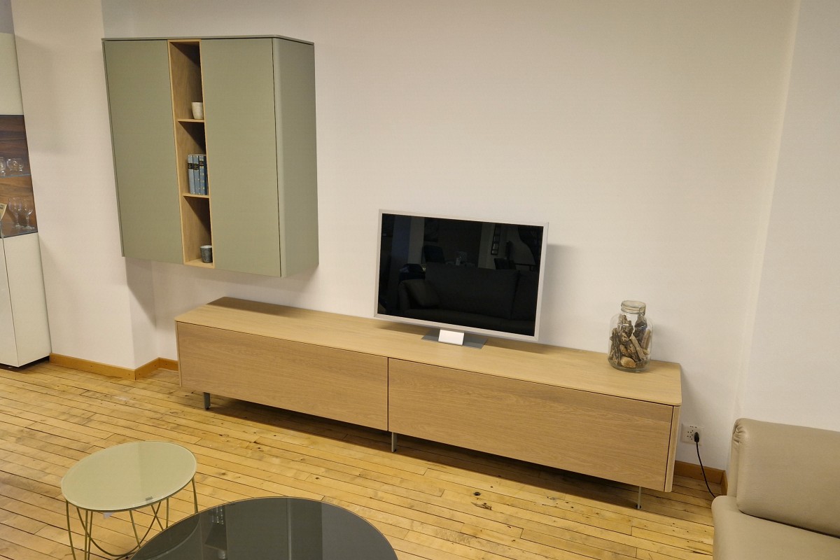 Lowboard in Eiche hell,  furniert mit Klappe und Schublade
