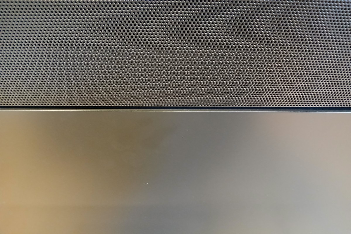 Lowboard in Lack cosmos, Lautsprecher Lochblechklappe, Abdeckung Keramik, mit Beleuchtung zweifarbig einstellbar